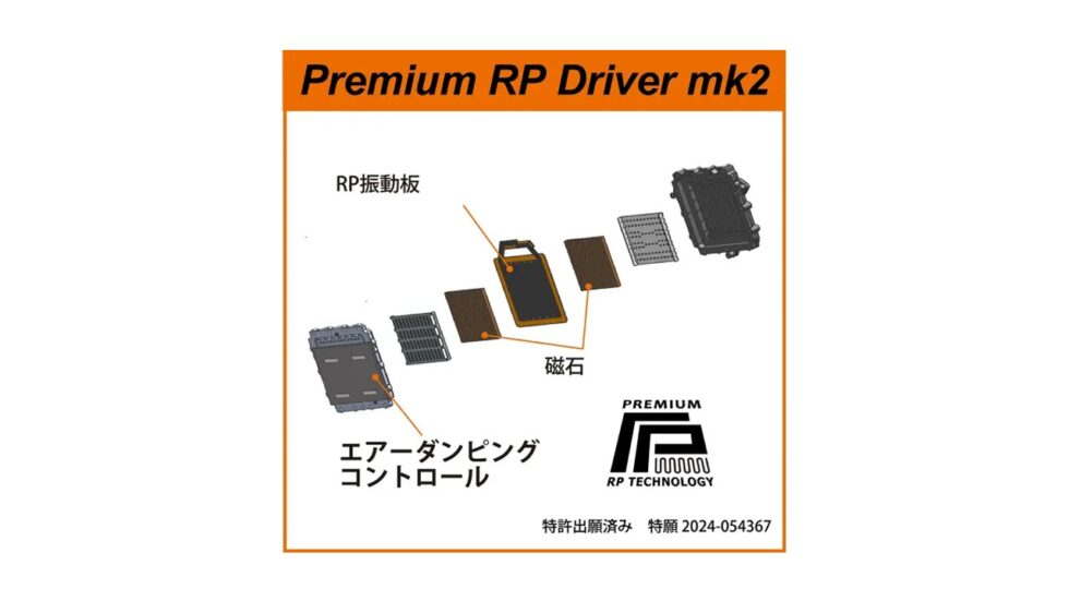 プレミアムRPドライバーmk2はTH50RPmk4で用いられている振動板よりも大きな面積の平面振動板を用いた他、プリンテッドコイルのパターンも新たな形状に起こし直した。これに加え、増量したマグネットをはじめ、磁気回路の構成部品を刷新。磁束分布を最適化することで、振動板の不要共振を抑え込み、鋭いレスポンスでの音の立ち上がり・立ち下りを実現した。そして今回の“mk2”化により、ドライバー内部の空気のダンピングコントロールを行うアコースティックフィルターや制振材の追加、そして新設計のイヤーパッドによる空気の流量調整によって、振動板そのものの動きを最適化。こうした改良によって低域における理想的な振動板振幅を実現させた。