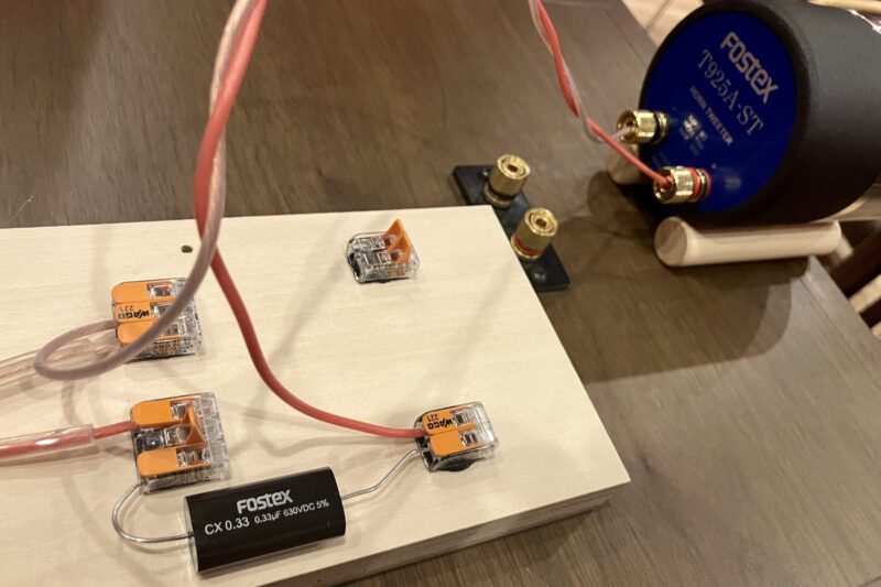 乙訓:冒頭でお話ししました出力音圧レベルについても、実際には数値ほどの差は感じず、例えばT925Aをお使いで、0.33μFを1個直列接続でちょうど良い状態の場合は、そのままツイーターをT925A-STに入れ替えただけでもOKかと思います。もしそれで、やや物足りない、もう少し出しても大丈夫と思われましたら、コンデンサーの容量を0.47μFに交換すると、ほぼ同じレベルになると感じました。
