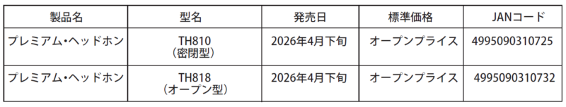 フォスター電機株式会社(フォステクス カンパニー プレジデント:田中英行/東京都昭島市/以下フォステクスカンパニー)は、「TH810」「TH818」 を4月下旬より出荷開始いたします。